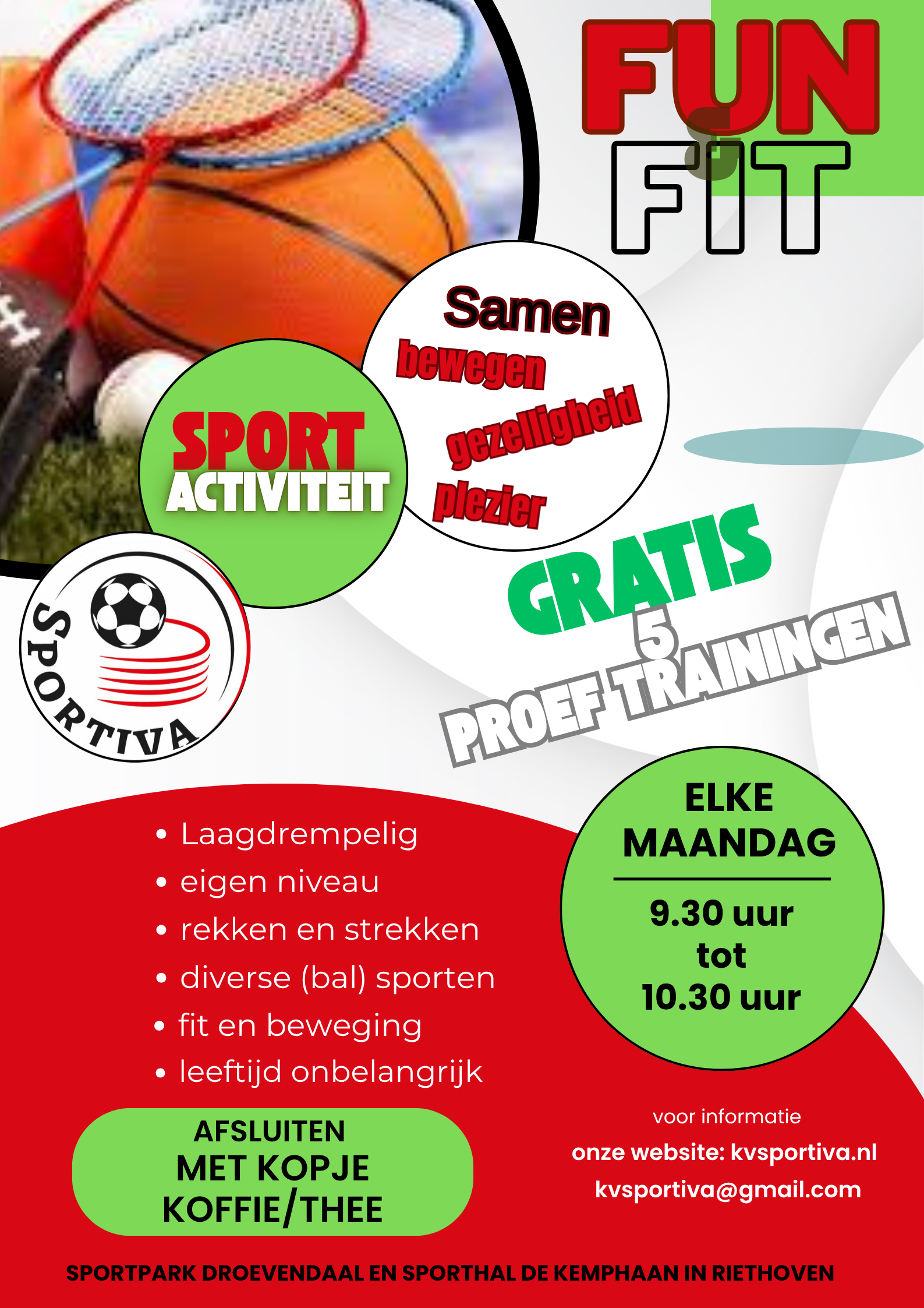 Fun & Fit voor mannen en vrouwen van ... tot ..r. Plezier voorop, samen bewegen en diverse sporten! Ga jij ook met ons meedoen?
